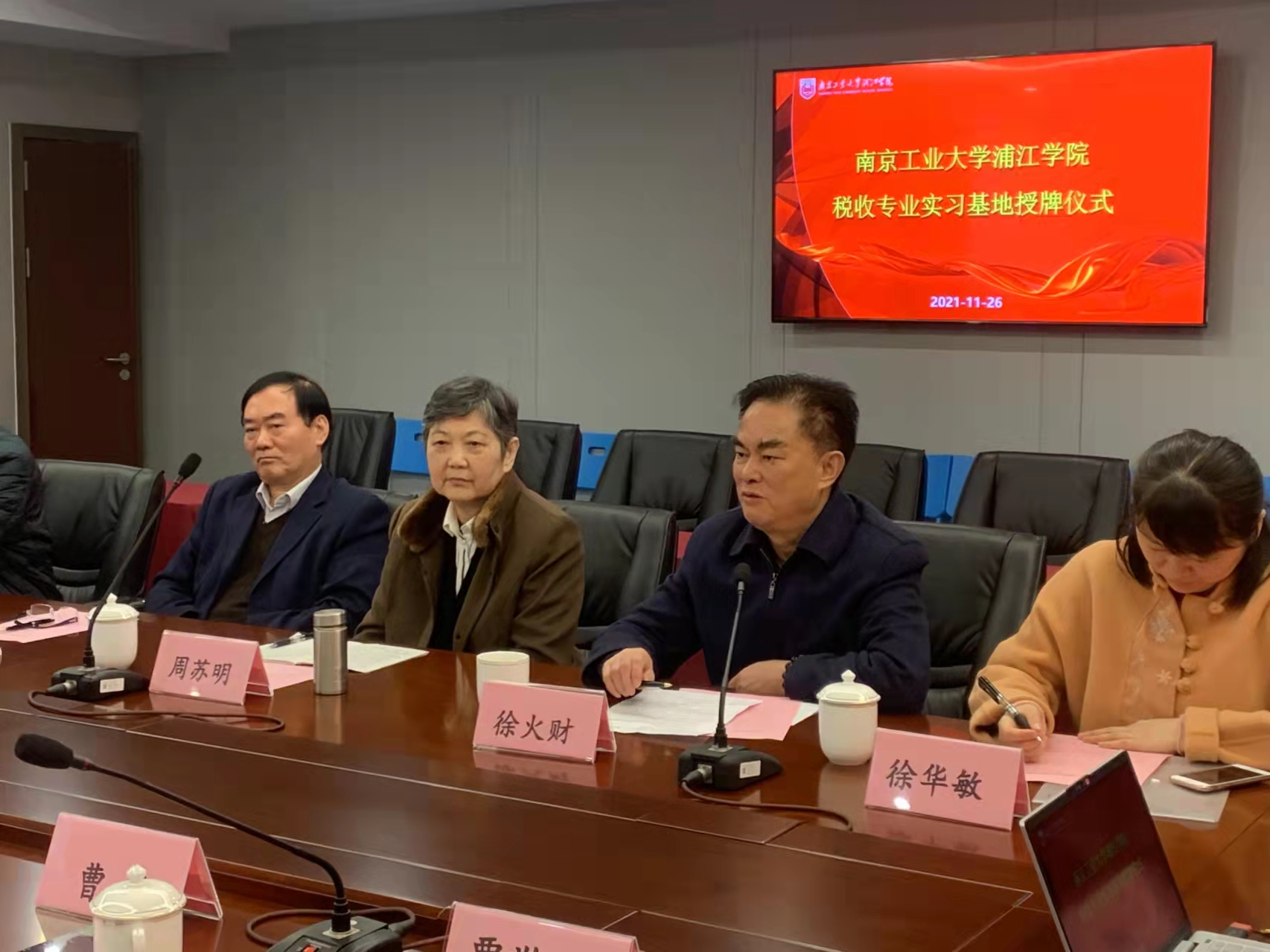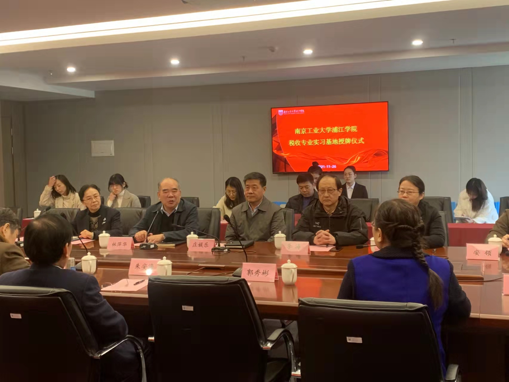 2021年11月26日上午10:00,在L1-712会议室,必赢565net官网举办了税收专业实训实习基地授牌仪式。江苏省注册税务师协会周苏明会长、徐火财副会长、朱安海主任、徐华敏主任以及9家税务师事务所和会计师事务所董事长、所长出席了授牌仪式。必赢565net官网林萍华校长、庄娱乐副校长、招就处贾敬典处长、必赢565net官网曹敏院长、李涛副院长、王力副院长,税收专业负责人程瑶教授、办公室主任柏婧老师及朱倩(外聘)、马金红、赵琳等专业教师参加了授牌仪式。林校长致欢迎辞,并介绍了浦江学院的办学特色,人才培养目标。徐副会长讲话指出,目前税务师行业发展迅速,专业人才需求极大,希望通过协会的协调促进,积极推进校企合作、产教融合。曹院长介绍了税收专业实习基地签约及学生实习就业情况。各税务师、会计师事务所领导的发言,充分肯定了必赢565net官网的办学理念、培养模式,对税收行业人才培养提出了殷切期望,并表示愿意接受学生实习、就业,积极开展教学研讨、教学竞赛等方面的广泛合作。最后,由两位校长向9所实习基地授牌,并合影留念。