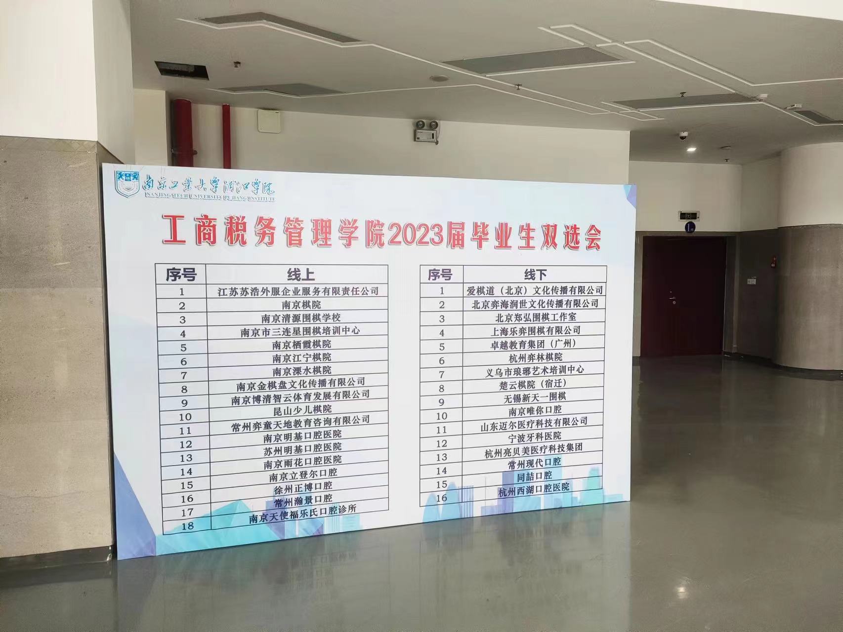 下午还邀请了南京棋院、南京清源围棋学校向同学们做了专场宣讲,并与江苏苏浩外服企业服务有限责任公司、南京棋院、爱棋道(北京)文化传播有限公司举行了实习基地挂牌仪式。此次活动为我院2023届毕业生顺利就业拉开了帷幕。