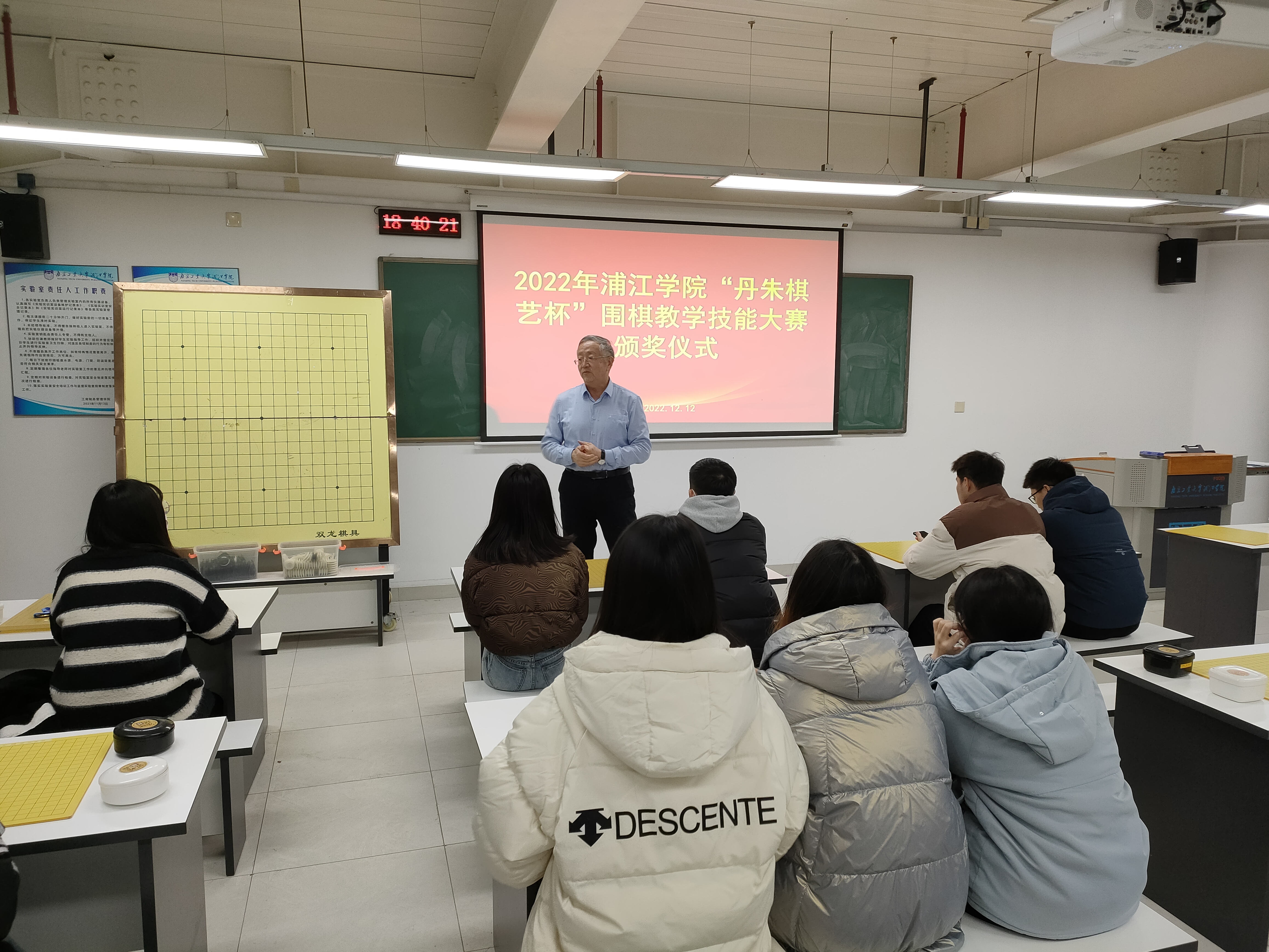 在经历了一周的讨论评选后,2022年12月12日晚上18:30在浦江学院L1-406围棋实训室举办了2022年浦江学院 “丹朱棋艺杯”围棋教学技能大赛颁奖仪式。