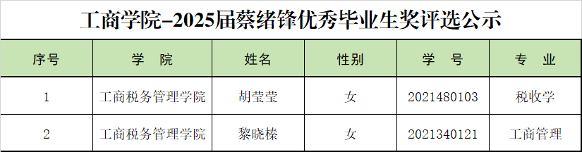 2025届“蔡绪锋优秀毕业生奖”评选结果公示